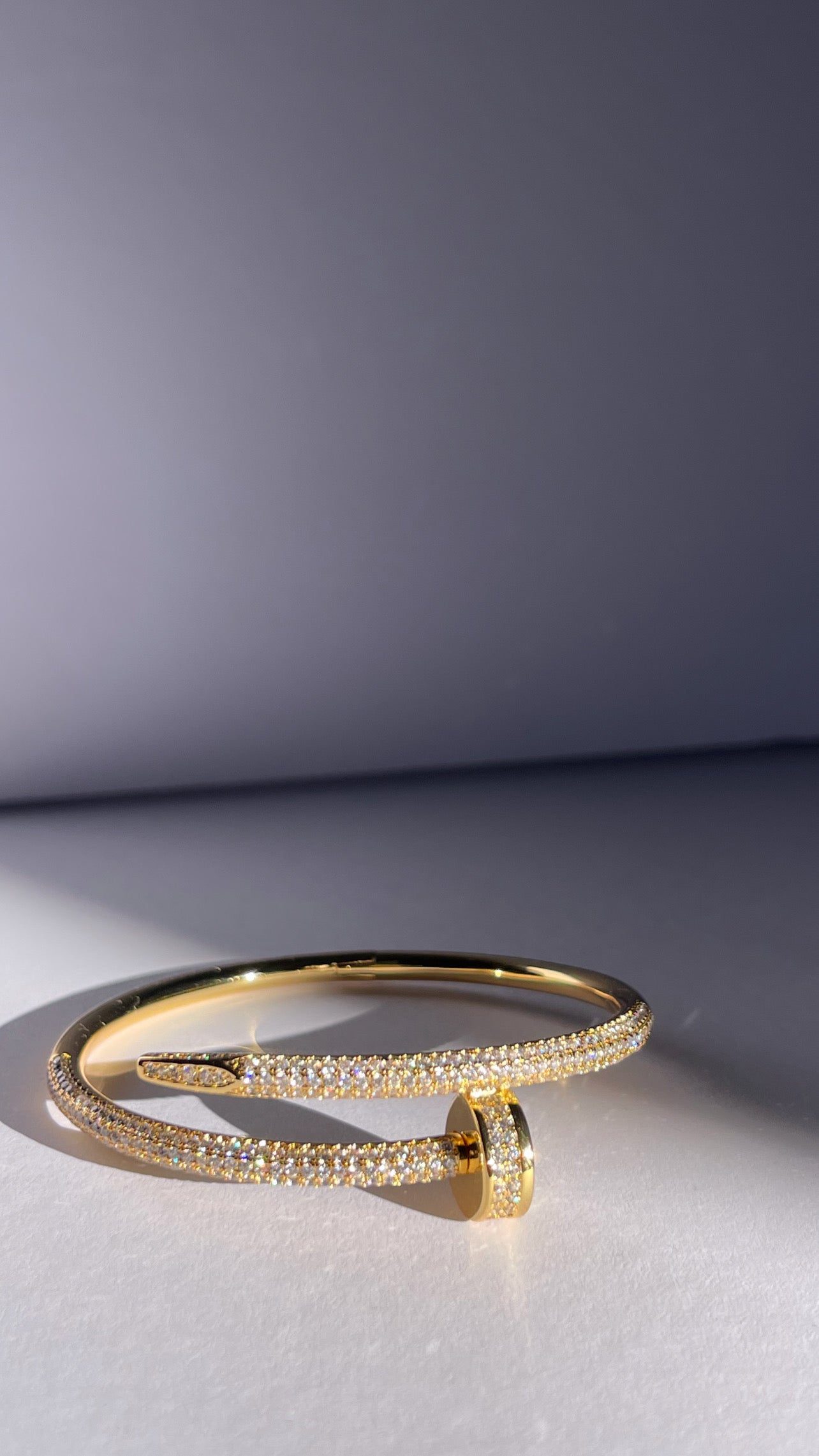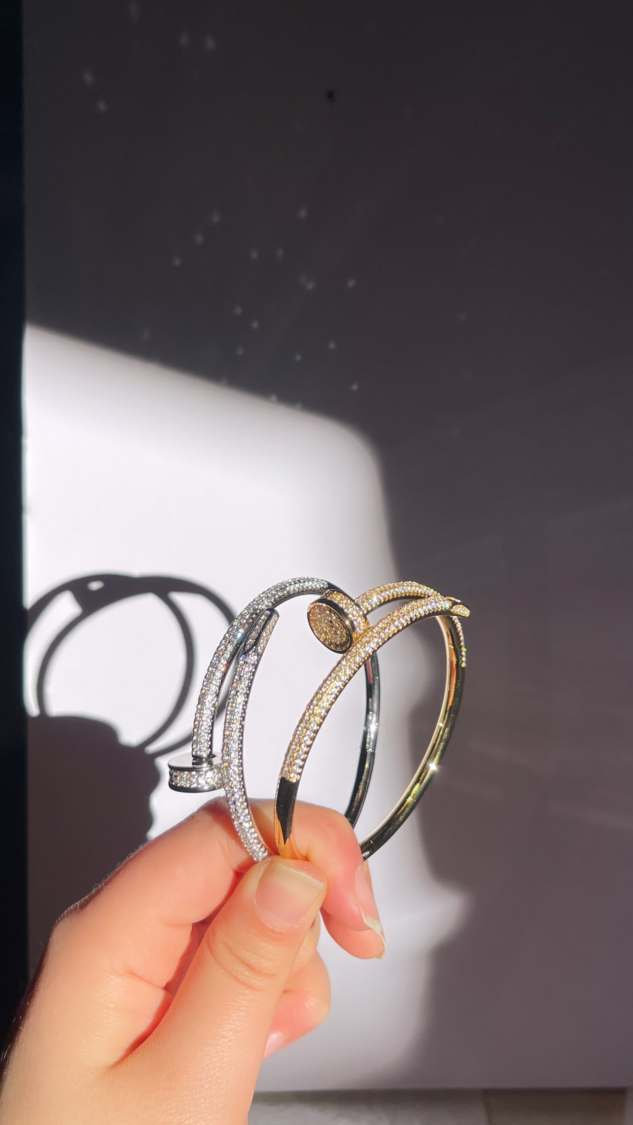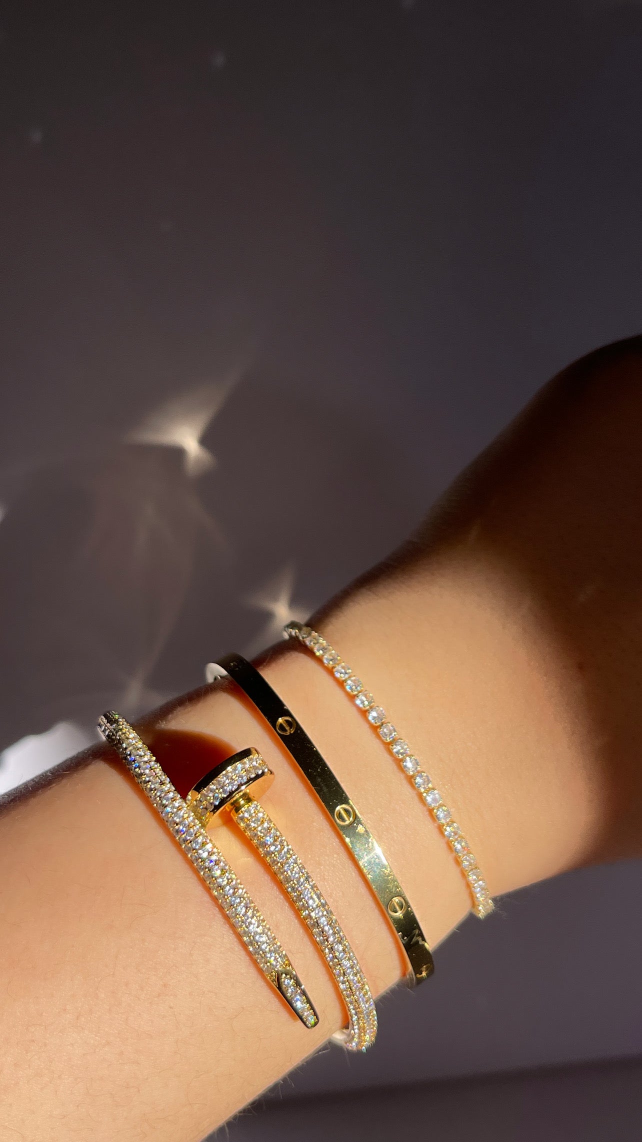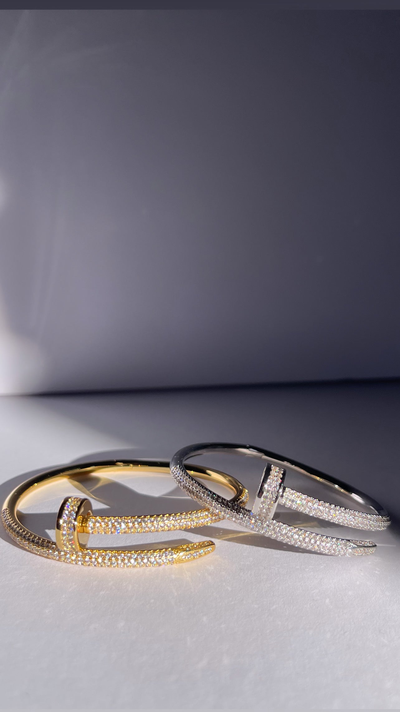 This stunning nail bracelet is available in a bracelet and ring both in silver and gold.