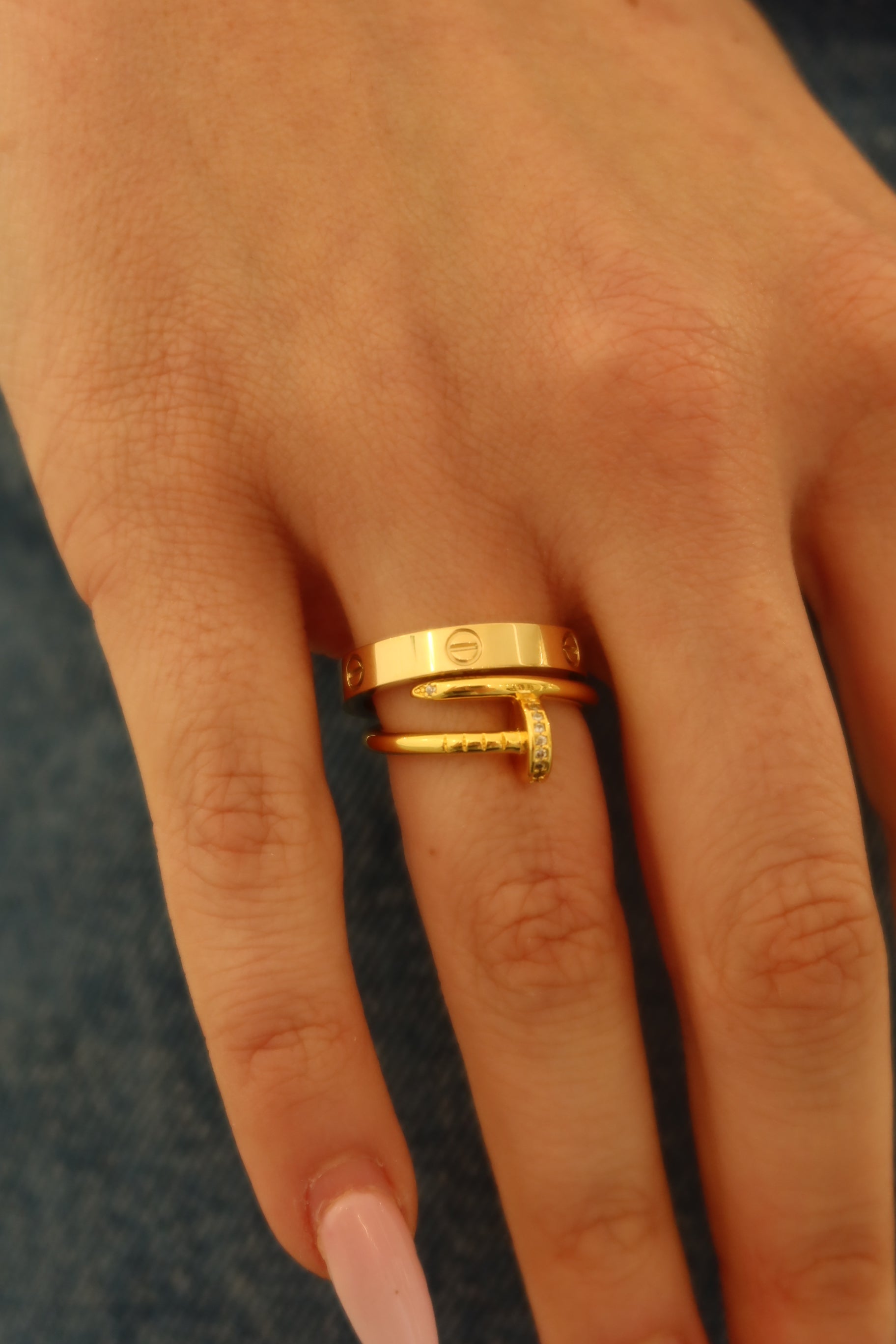 Gorgeous nail ring perfect match with the gold love ring.
