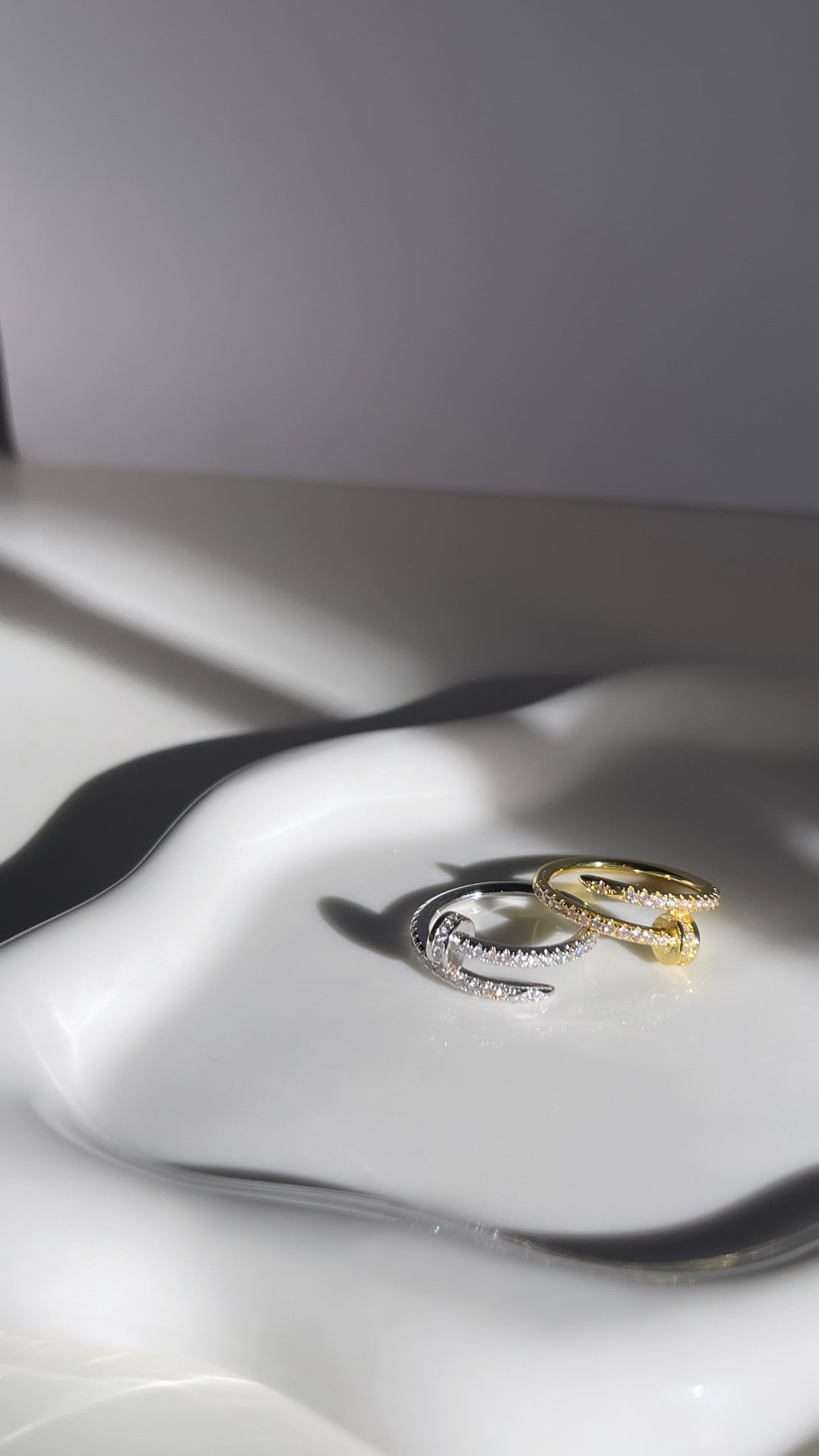 This stunning nail ring detailed with over 50 crystals is a perfect ring to pair with the love ring. Seamless and classy only $35.00.