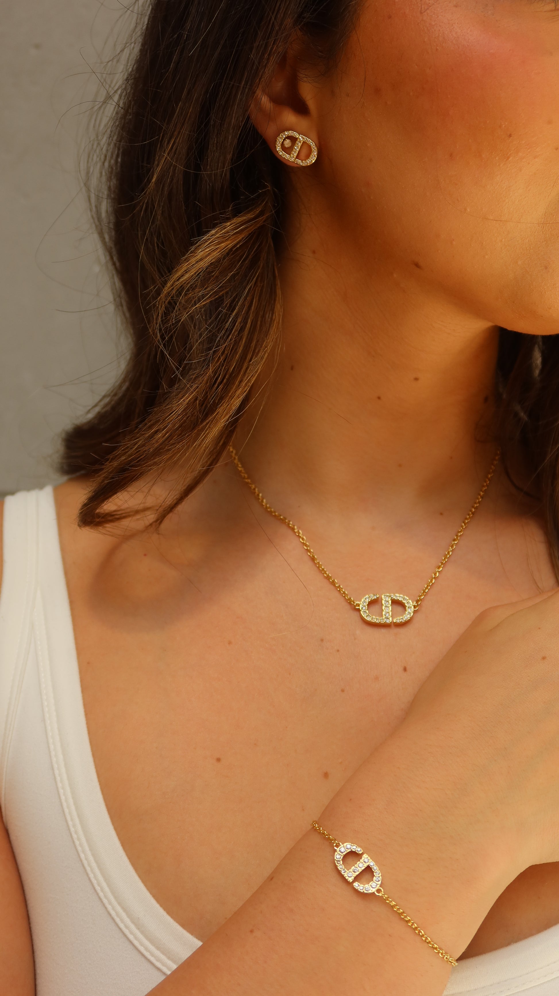This stunning set includes a matching necklace, bracelet & earrings beautifully accented with rhinestones — the perfect touch of everyday elegance.