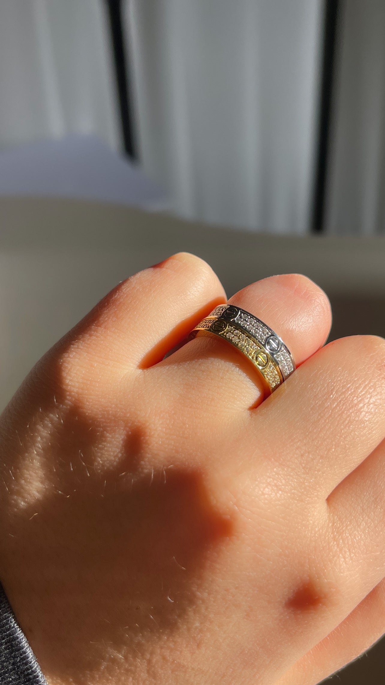 Perfet ring available in gold and silver detailed with over 50 crystals. This ring is perfect to stack together or wear individually.