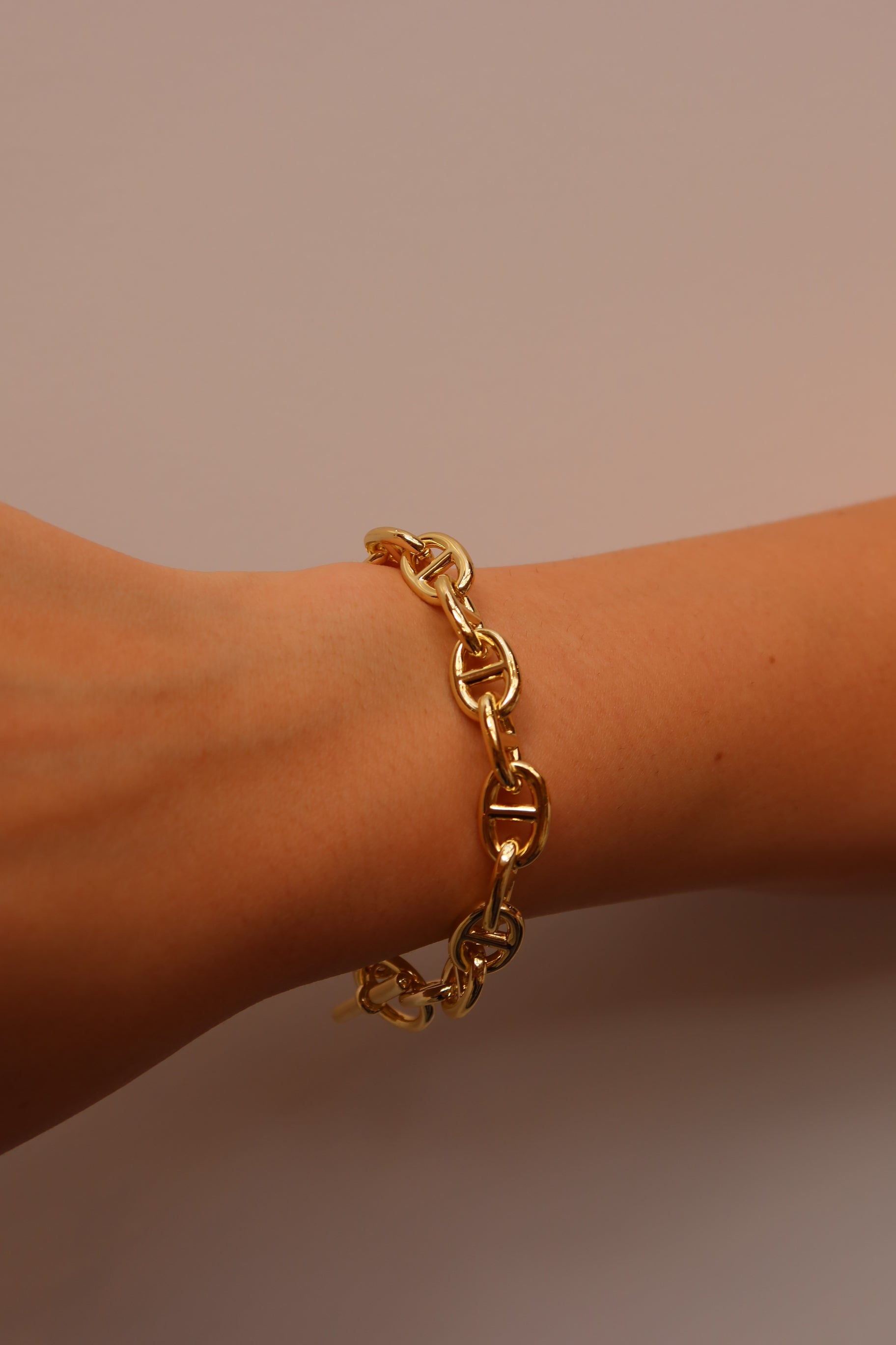 The bracelet is a standard 18–19cm length, secured by a classic link-through circle clasp — easy to put on, secure, and beautifully sleek on the wrist.