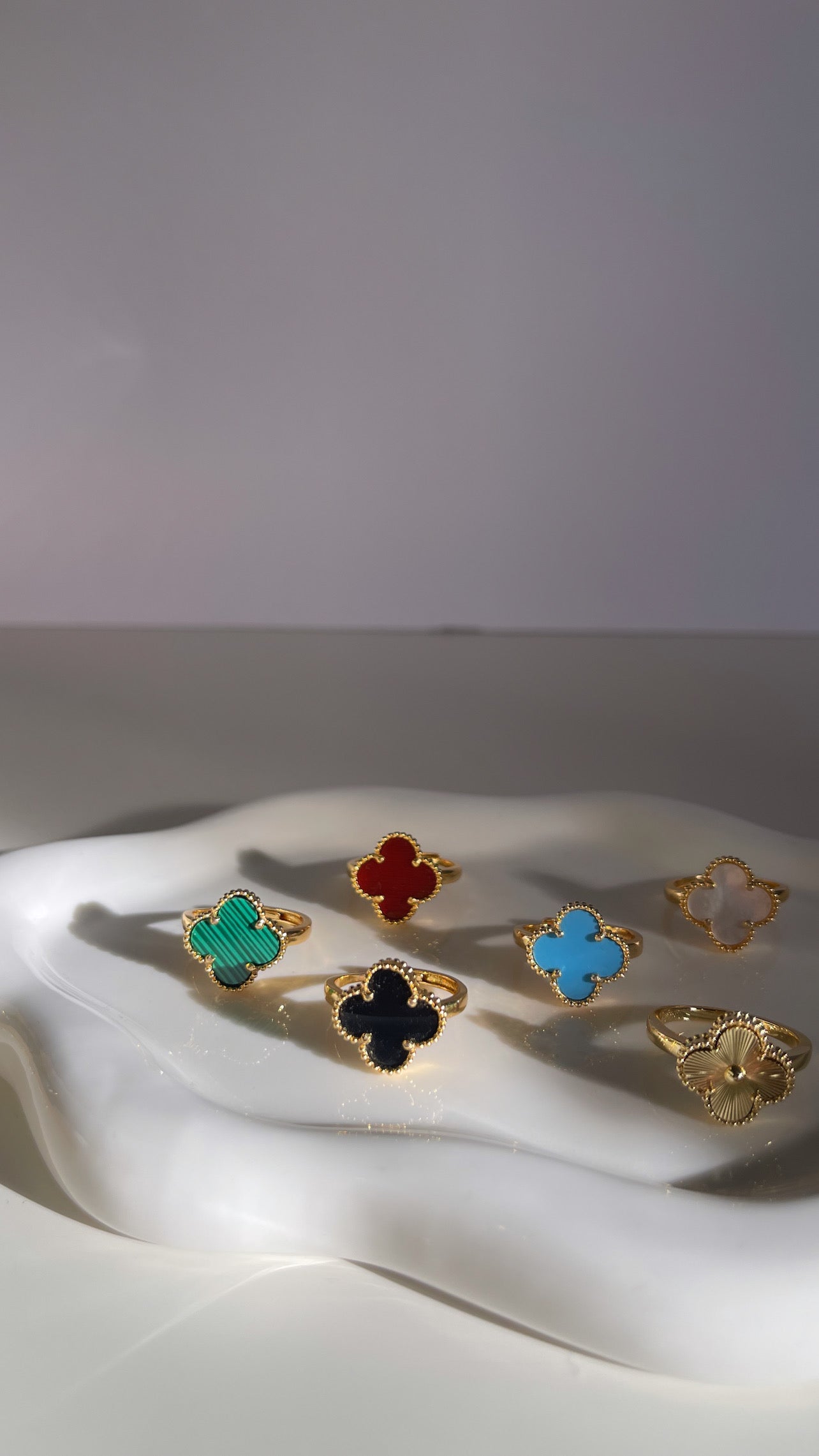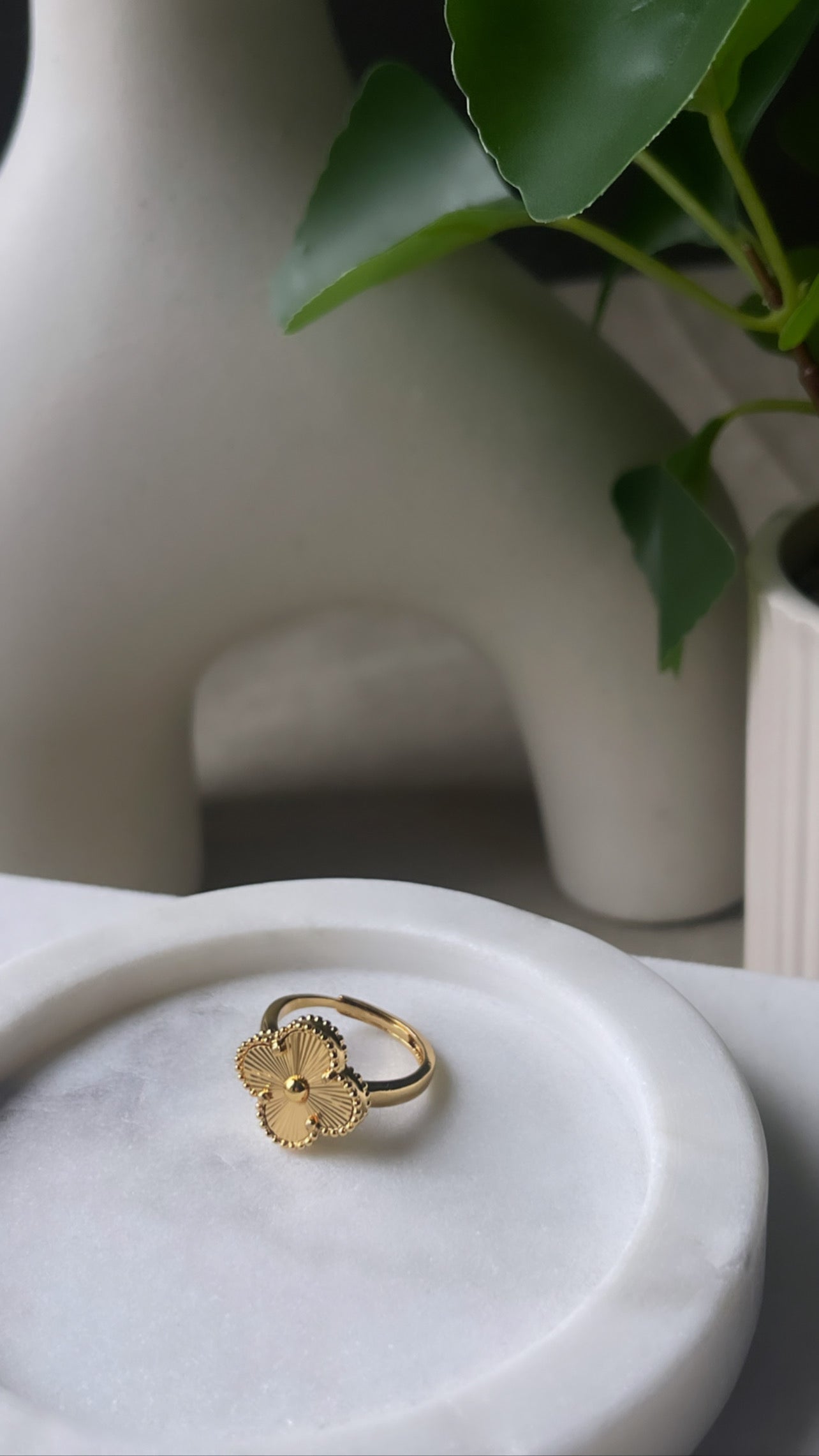 This ring is inspired by the clover leaf. This ring is adjustable expect for the gold which has sizes from 5-9. This is a modern, unique and fashionable element and perfect for stacking or to be worn alone. Only $30.00 coming from Australia.